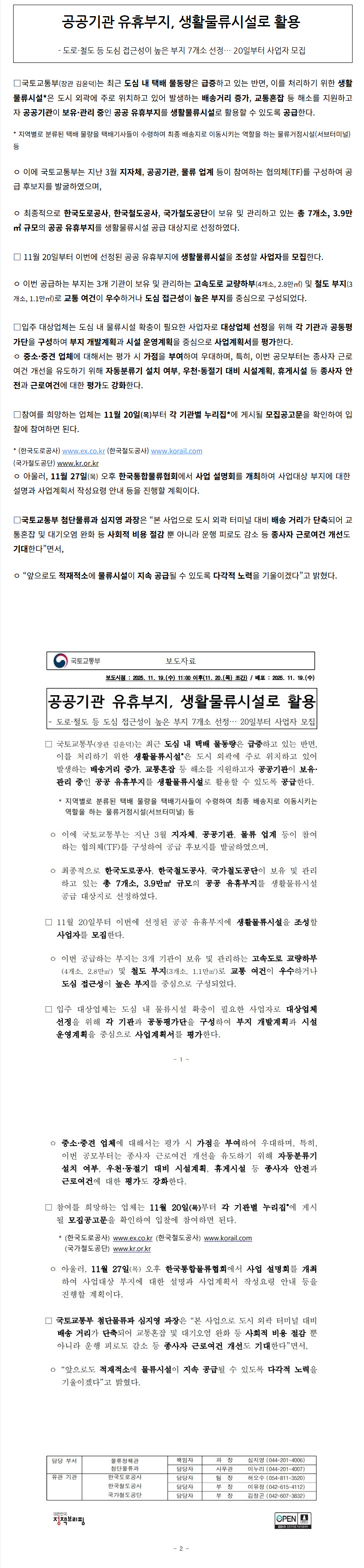 | 공공기관 유휴부지, 생활물류시설로 활용 | 교육팀 / 2025.11.20 | |