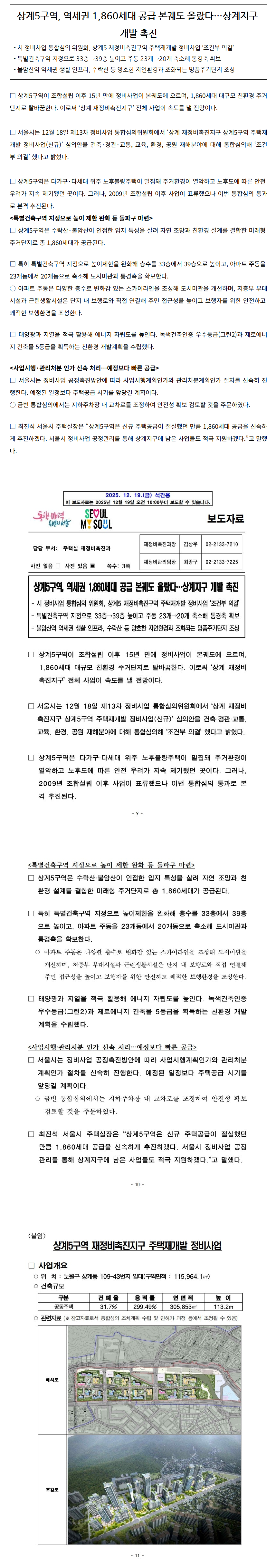 | 상계5구역, 역세권 1,860세대 공급 본궤도 올랐다…상계지구 개발 촉진 | 교육팀 / 2025.12.19 | |