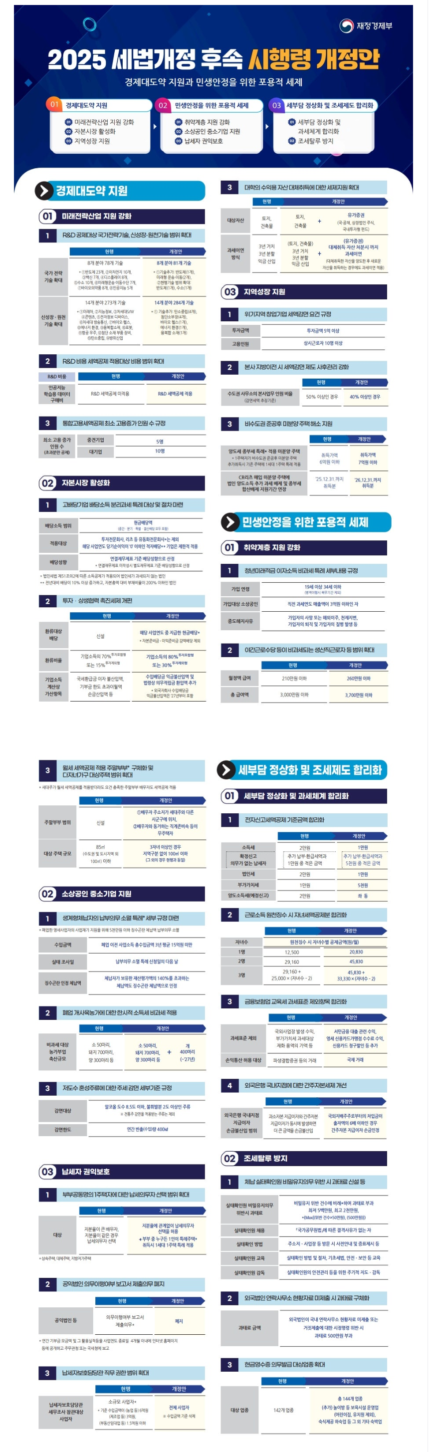 2025년 세제개편후속 시행령 개정안 (요약본)