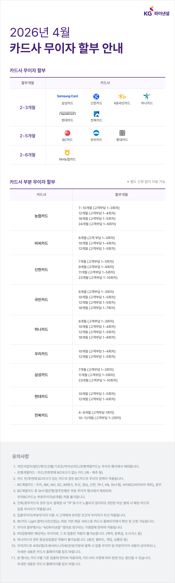 | 2026년 4월 카드사 업종 무이자 행사 안내 | 네오비 교육팀 / 2026.03.31 | |