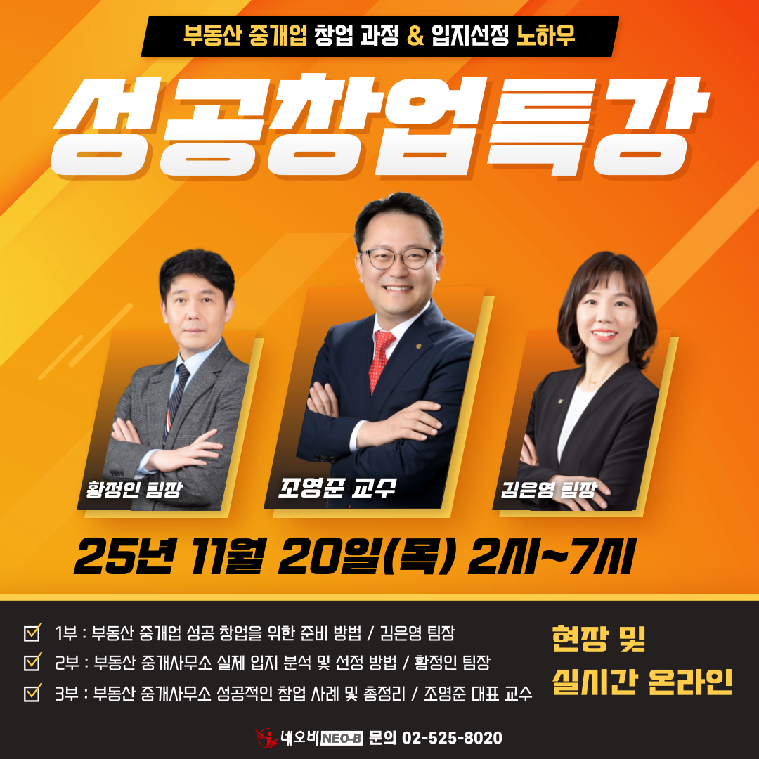 부동산 창업의 생생한 현장을 중심으로 핵심만 알려드리는 네오비 공인중개사 성공창업 특강